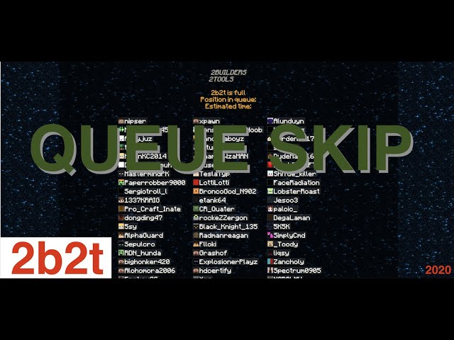 Skipping 2b2t's queue in 40 seconds, enjoysupport with queue skip: Connect to 2b2t.org, wait in queue for 10 minutes, disconnect, replace.org with.com aaaand there you go, a working queue skip How to skip 2b2t queue. What is the 2b2t server ip? What is the server address for 2b2t? The only reliable way to skip 2b2t queue!@@!!!!! The world is 10 years and 3 months old, with a size of 10 313 gbs and over 639,377 players visiting at least once. First step is you install any hacked client that has the module tracers. 3rd step disconnect wifi and instantly close minecraft. Second step join 2b2t with tracers already enabled (enable them in singleplayer) have them set to animals mobs and players. How to skip 2b2t queue. It just changes ur account id to temp prio queu. If playback doesn't begin shortly, try restarting your device.